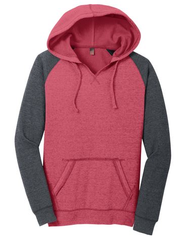 District Women’s Lightweight Fleece Raglan Hoodie DT296 - Heathered Red