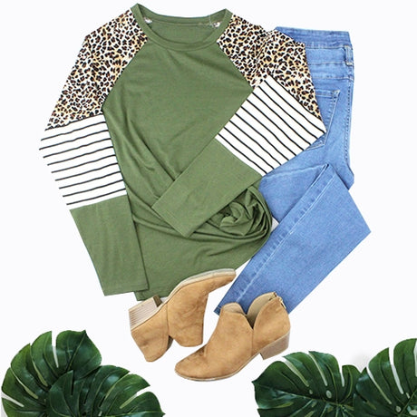 $0.00Unit price /UnavailableOlive Leopard and Stripes Long Sleeve Top