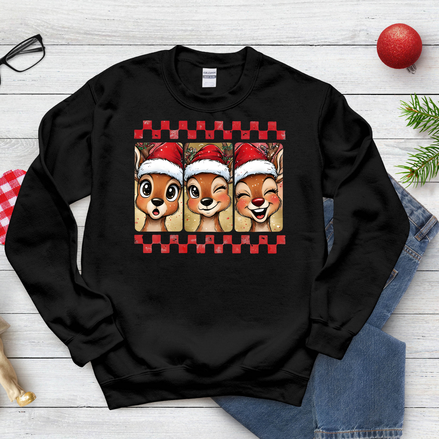 Reindeer Trio - Crewneck / Black / S is backordered and will ship as soon as it is back in stock.