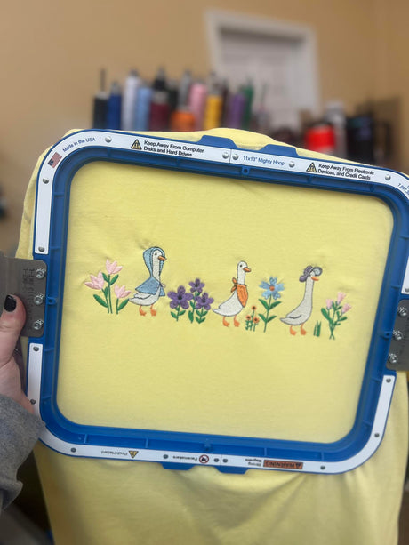 Spring Goose Embroidered on a Port & Co Soft Style T-shirt