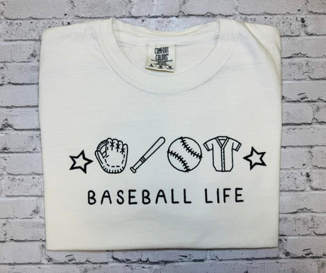 Baseball Life Embroidered on a Comfort Colors T-shirt