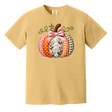 DTF design shown on a mustard color comfort colors tee